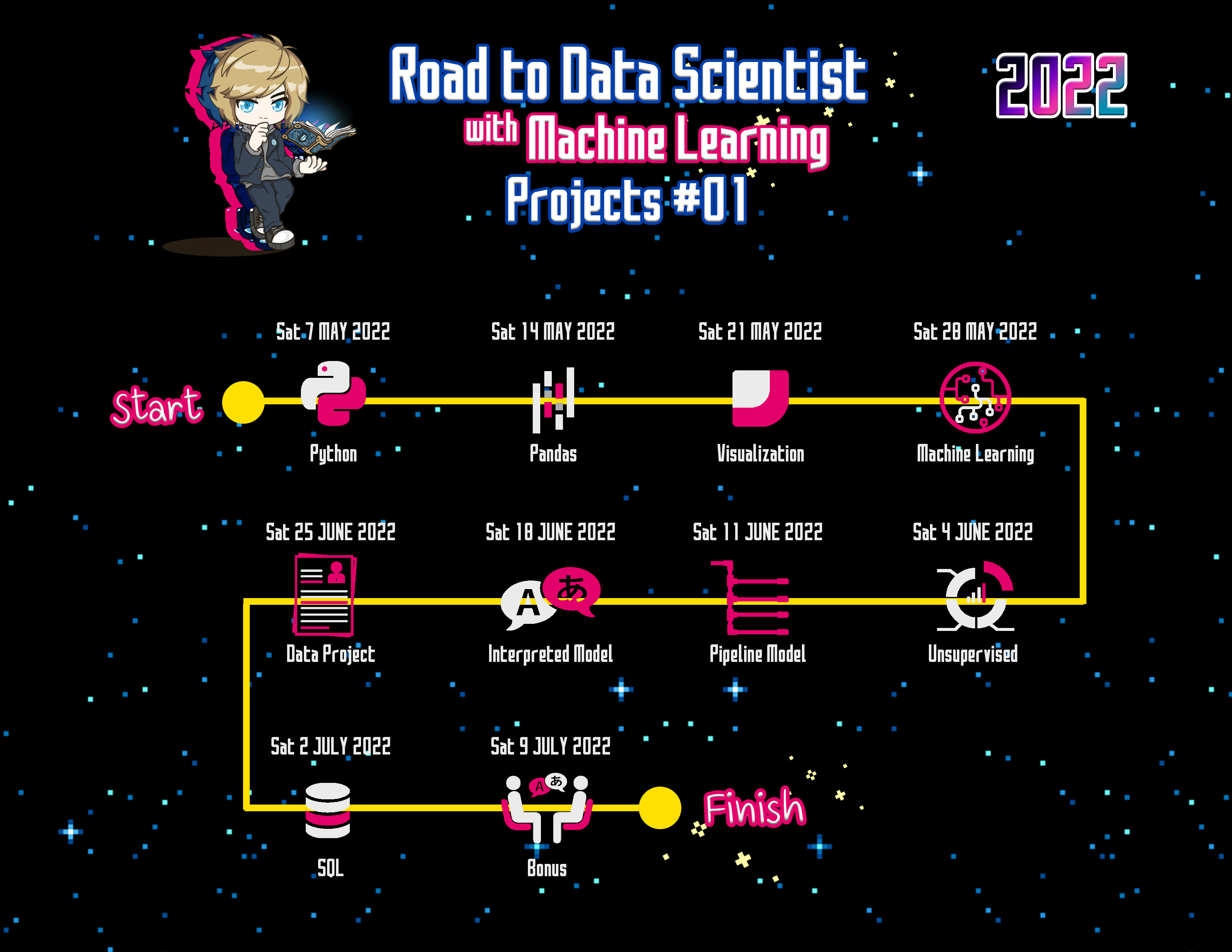 - เพื่อนๆที่สนใจพัฒนาและฝึกทำ Data Project เพื่อใช้ในการสมัคร Data Scientist